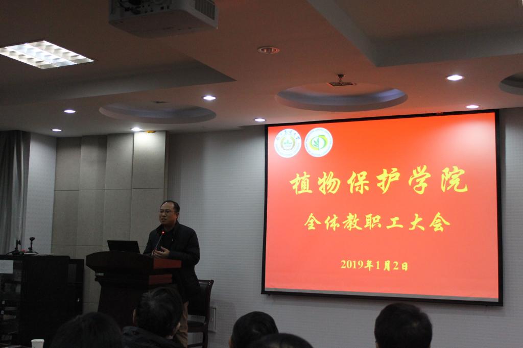 植保学院院长王源超作欢迎发言,他感谢学校党委和组织部一直以来对学院工作的关心和支持,感谢上一任书记吴益东的付出与奉献,并期待新领导班子在后续工作中,团结协作,再创更大辉煌。