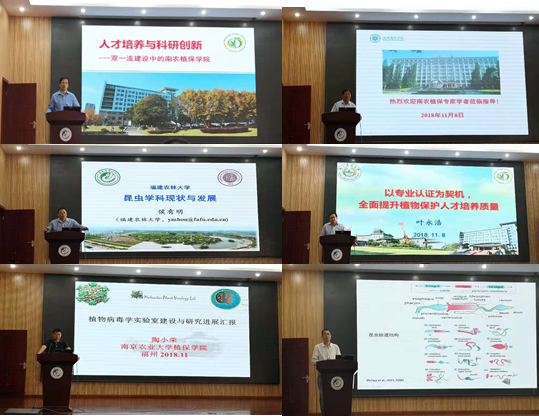 近年来教学、科研取得的突出进展给予高度评价,希望以此次访问交流为契机,进一步巩固和加强双方科研合作,共同谋划和促进植保学科快速发展。王源超院长和魏太云院长分别介绍了各自学院的办学渊源、人才培养、科研成果等情况,侯有明副院长和叶永浩副院长也分别就福建农林大学昆虫学科概况和南京农业大学植保学科专业论证情况做汇报、交流。