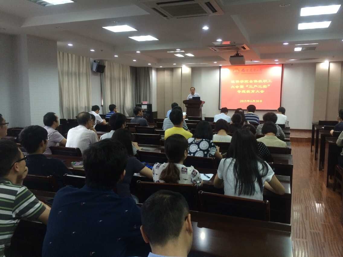全体教职工大会暨“三严三实”专题教育大会在理科楼C303召开。会议由黑料网