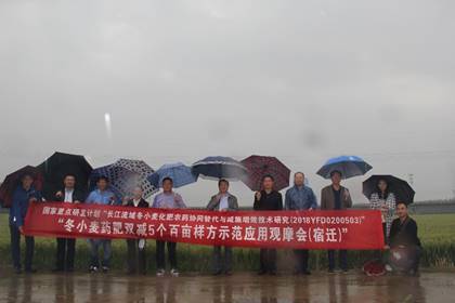 主办,南京农业大学植保学院除草剂研究室、江苏省宿迁市农业技术综合服务中心承办的“冬小麦药肥双减5个百亩样方示范应用观摩会”在江苏省宿迁市成功召开。该研究是国家重点研发计划项目“长江流域冬小麦化肥农药减施技术集成研究与示范(2018YFD0200500)”的课题之一,由南京农业大学植保学院董立尧教授主持。该课题的顺利实施,对长江流域冬小麦化肥农药减施增效具有重要意义。