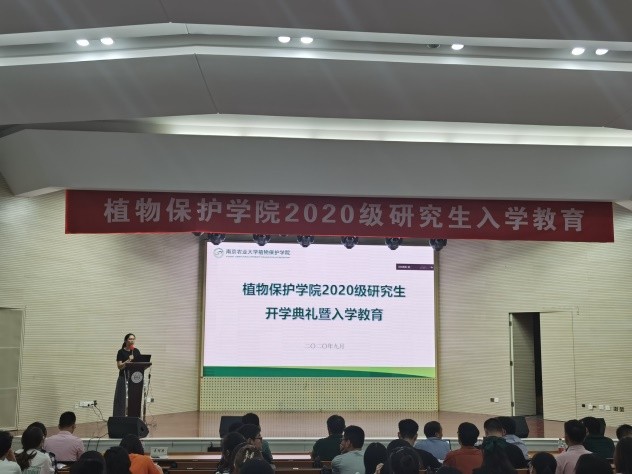 会上学院为2020级307名研究生新生发放了印有学院院徽和新生姓名的专属实验服,希望研究生谨记“安全第一”,同时希望研究生秉承“厚德至真,勤学敦行”的院训,传承植保优秀的科研精神,认真钻研,潜心研究,为粮食安全、绿色农业、生态文明、人类生存与健康不断贡献力量。