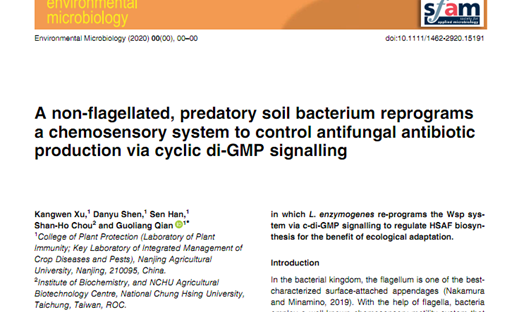 据悉,钱国良教授研究组长期从事生防溶杆菌的基础与应用研究,先后主持国家自然科学基金4项,近5年在Nucleic Acids Research, PLoS Pathogens, Environmental Microbiology, Molecular Microbiology等期刊上发表SCI论文12篇。钱国良教授先后入选江苏省杰出青年基金获得者(2019年);中国植物病理学会的青年植物病理学家(2019年)和南京农业大学“钟山学者”(2019年)。