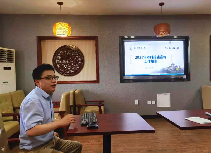 专场招生宣传培训会,详细介绍湖北省和江苏省的招生宣传工作重点、要求及注意事项,做好培训动员。学院领导、行政人员及全体招生人员参加会议,做到招生宣传工作人员全员培训,招生宣传要求落实到位。