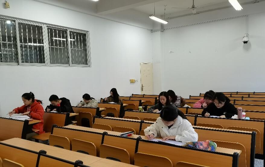 为帮助同学们检测学习效果,学院于11月14日在教学楼B106举行模拟测试。在实战演练中,同学们锻炼了考试时的时间分配与把控,也更加明确了备考中的薄弱环节,理清了后续复习思路。