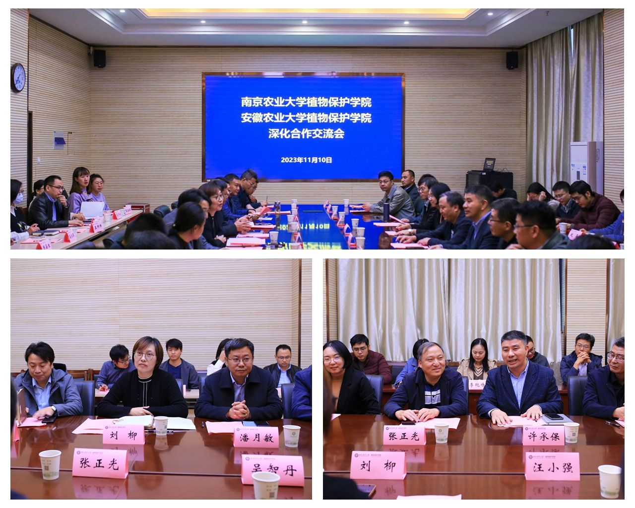 座谈交流。安农植保学院党委书记刘柳,院长潘月敏,党委副书记汪小强,副院长唐庆峰、张华建及部分党支部书记、青年教师代表参加座谈会。会上,大家观看了安徽农业大学建校95周年校庆宣传片,潘月敏院长向大家介绍了安农植保学院近些年的发展状况和取得的成绩,双方围绕党建思政、学科建设和人才培养等工作深入交流,进一步推进学院之间在多领域的共建与合作。